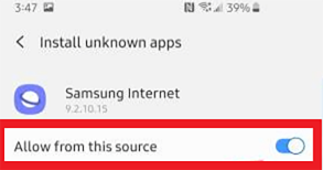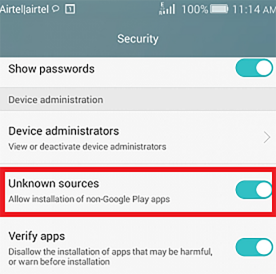 3. Under the APP INSTALLATION section, click on Unknown source installations.